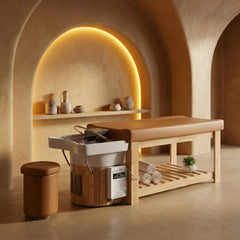 The Asahi Wood Harmony Japanese Head Spa table is designed to provide an exceptionally relaxing experience, ideal for clients seeking the ultimate in comfort. Its meticulous workmanship, comfortable padding, and ergonomic design make it the perfect choice for any salon or spa looking to offer high-quality services.